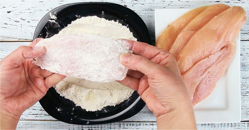 Kawałki kurczaka obtaczamy w mące, jajku, a następnie w bułce tartej. Świetnym dopełnieniem tej panierki jest starty parmezan, który nadaje mięsu wyrazistości.