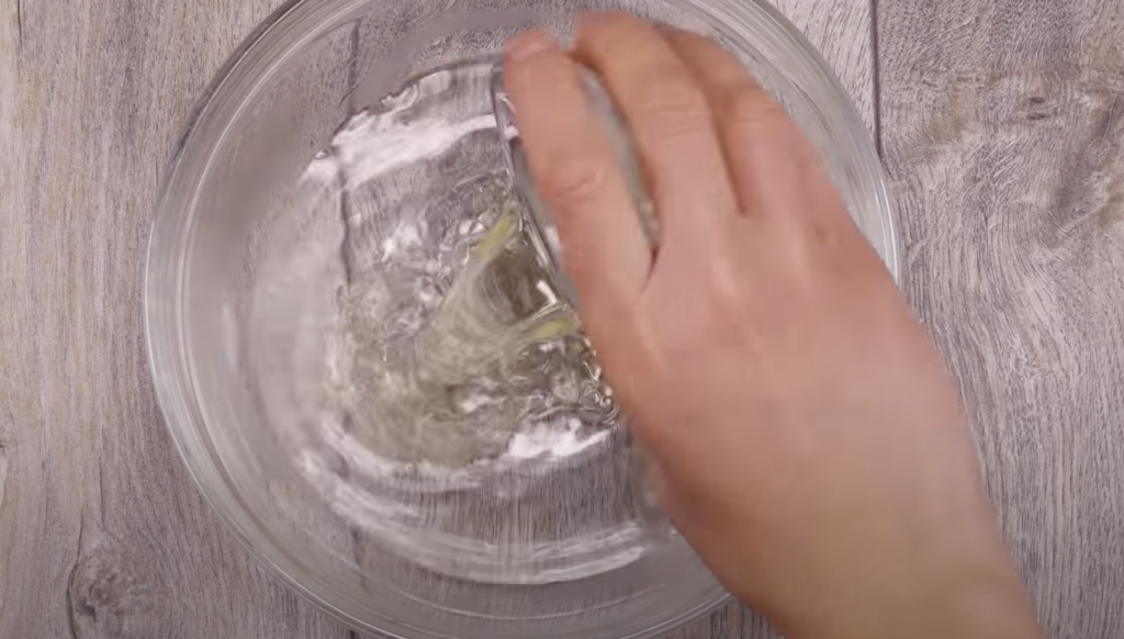 Gorącą wodę wlej do miski, dodaj olej i esencję waniliową.
