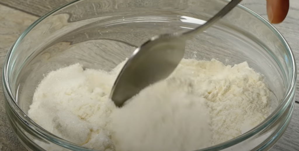 Mąkę oraz pozostałe sypkie składniki wymieszaj.