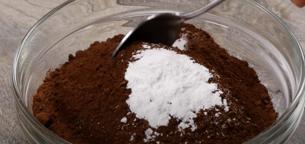 Ciemną część ciasta przygotuj w dokładnie taki sam sposób, z tym, że do sypkich składników dodaj dodatkowo kakao.