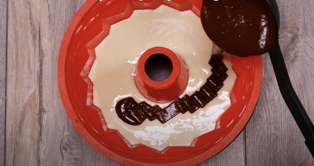 Przygotuj silikonową lub wysmarowaną tłuszczem metalową foremkę. Wlej do niej jasne ciasto.