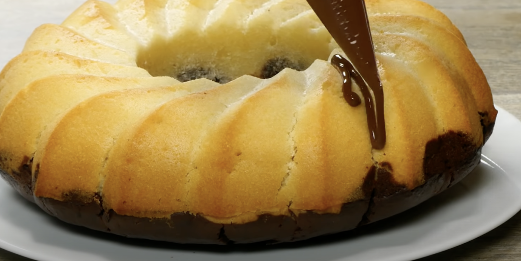 Piekarnik nagrzej do 180 stopni. Włóż foremkę z ciastem i piecz przez około 40 minut. Gotowe ciasto polej polewą czekoladową.