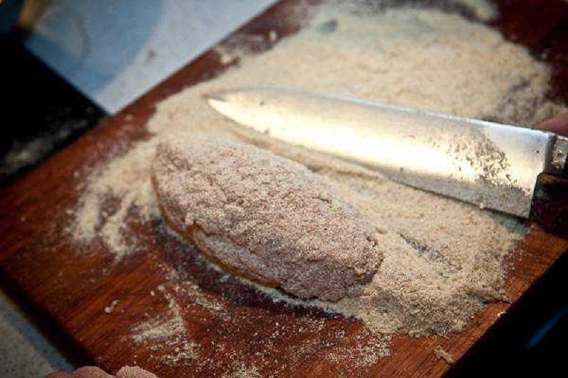 Nadszedł czas na kreatywność! Ukształtuj kotleta tak, aby masło było ukryte w środku. Opanieruj go w bułce tartej, dla owalnego kształtu delikatnie naciśnij nożem, a potem na 20 minut schowaj do zamrażarki.