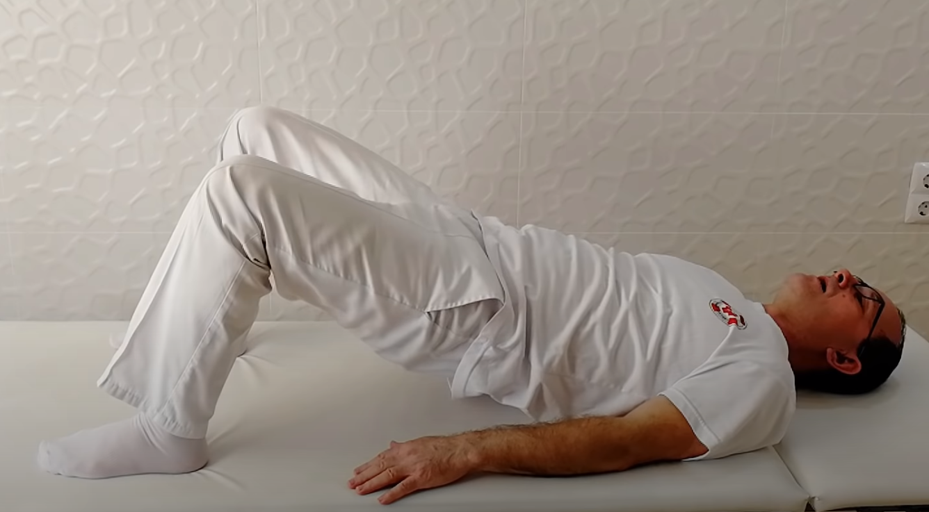 Jeśli masz kłopot z podnoszeniem miednicy, przyciśnij ją na kilka sekund mocno do podłoża, a następnie rozluźnij ciało. Ten ruch stymuluje lepsze krążenie krwi w kręgosłupie lędźwiowym.