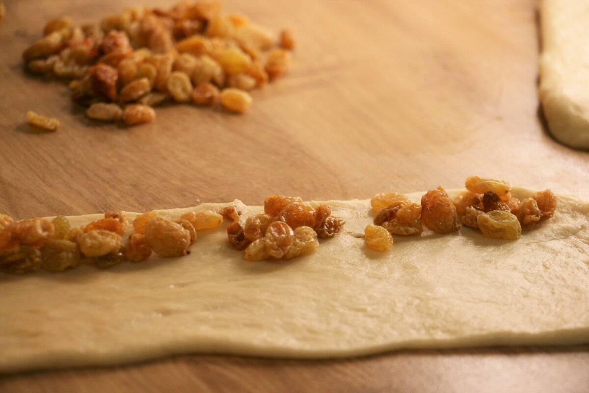Wystarczy rozwałkować ciasto, napełnić rodzynkami, zawinąć i włożyć do piekarnika na około pół godziny. Jeśli się nie spieszysz, możesz przed włożeniem do piekarnika odstawić je na godzinę.