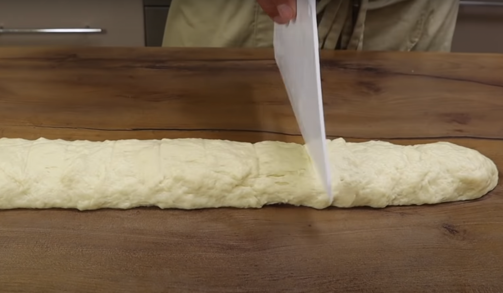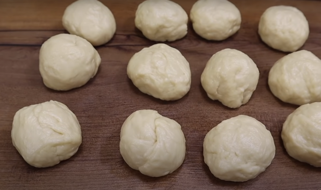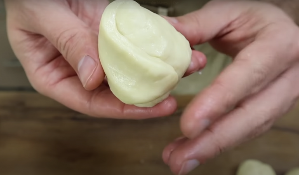 W tym celu należy posiekać zioła i wymieszać z serkiem topionym. Wypoczęte ciasto uformować w długi wałek i podzielić na równe części, po czym każdą z nich uformować na kształt kuli.