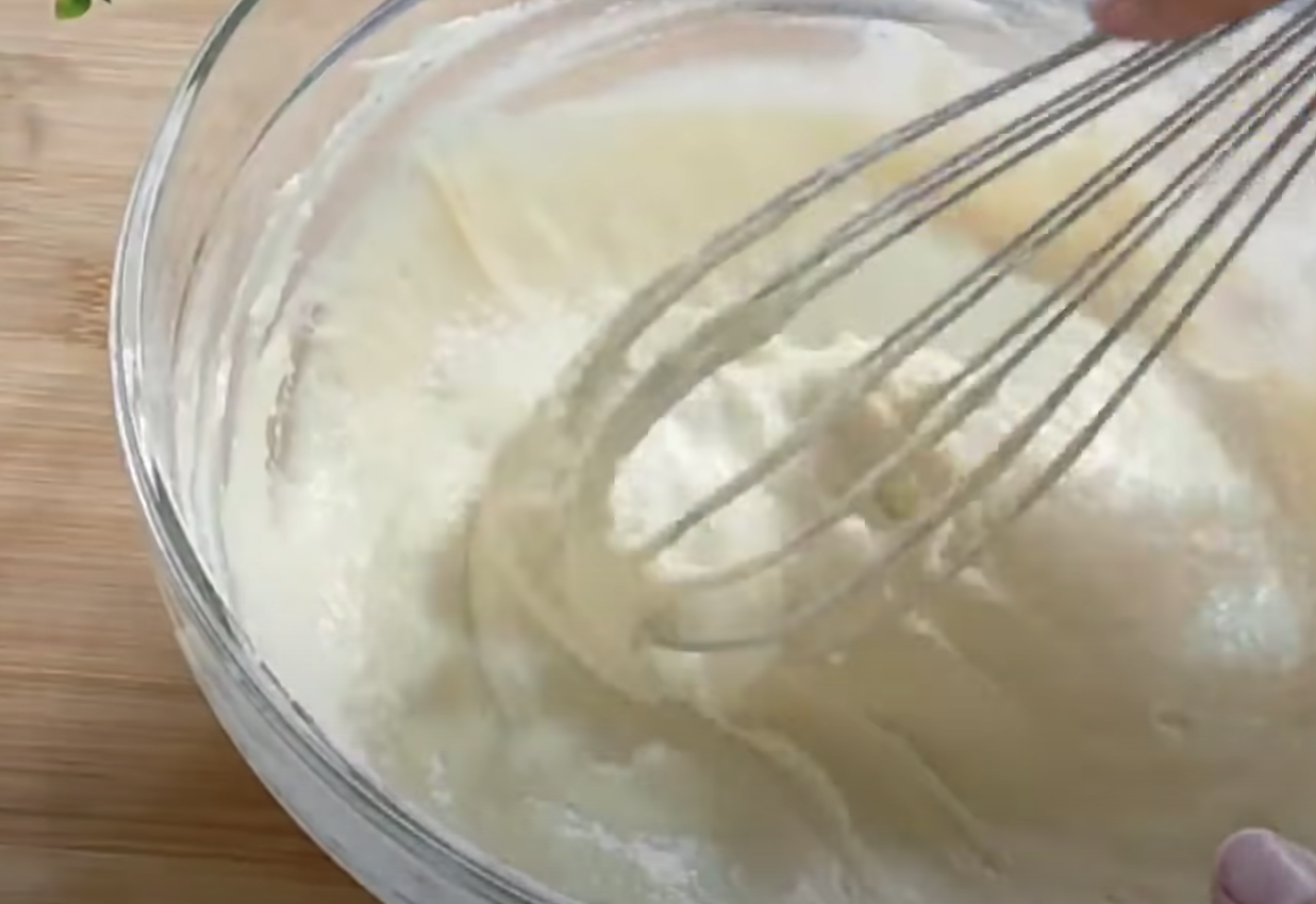 Dodaj mleko, roztopione masło, płynny miód. Mieszamy.
