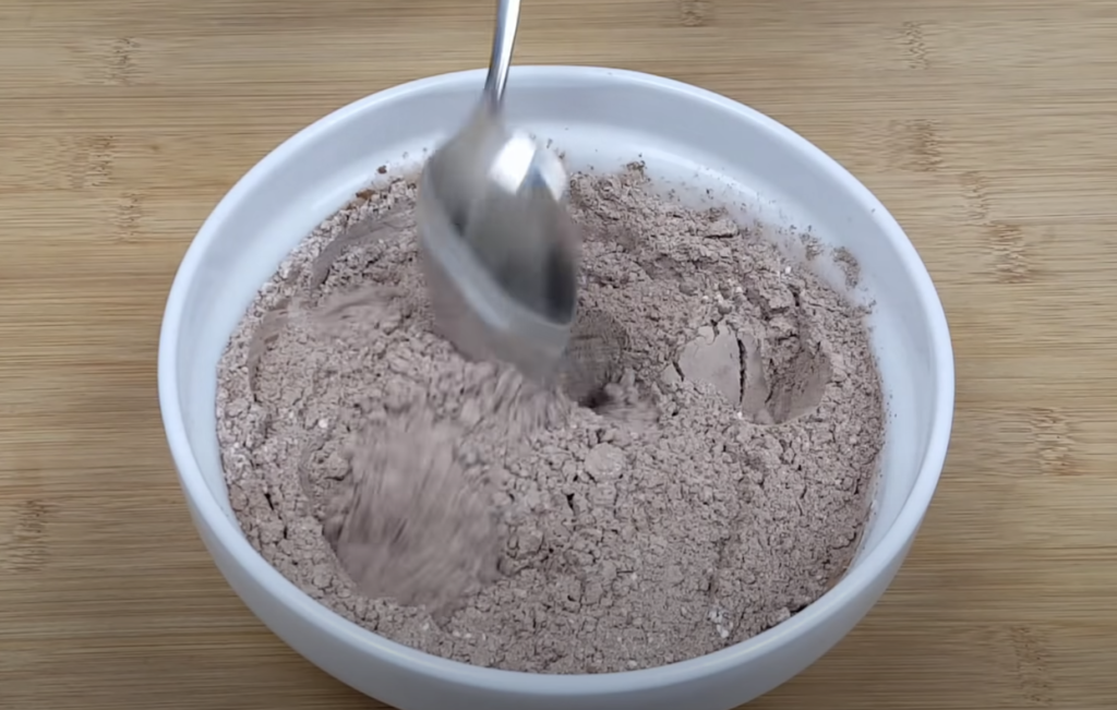 Do miski dodaj: mąkę, kakao, sól, proszek do pieczenia i dokładnie wymieszaj.