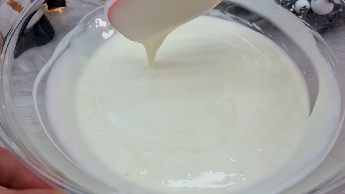 Mleko skondensowane oraz kwaśna śmietana powinny być w temperaturze pokojowej. Wymieszaj je ze sobą w misce.