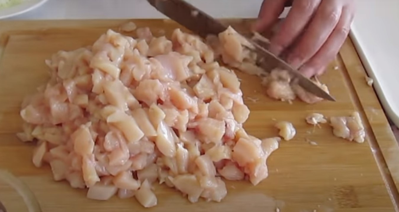 W międzyczasie drobno posiekaj czosnek, cebulę i paprykę. Umyj pomidory i pokrój je na małe kawałki. Pierś z kurczaka również możesz pokroić na mniejsze kawałki. Następnie na dużej patelni rozgrzej olej roślinny. Gdy cebula się podsmaży, dodać pokrojoną paprykę i smażyć razem.