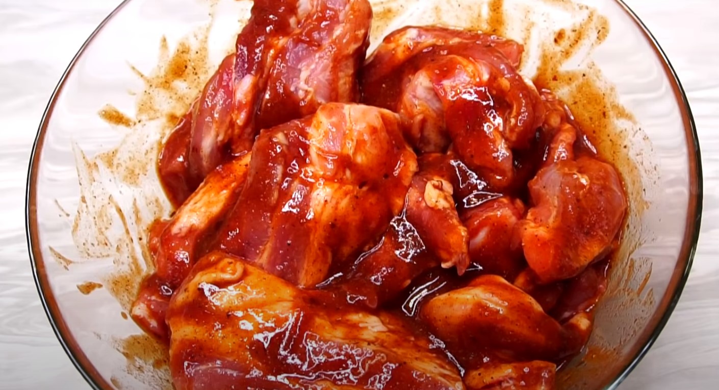 Dobrze połączyć składniki. Następnie umieścić żeberka w dużej misce. Na wierzchu zalać marynatą. Umieścić wszystko w pojemniku i przykryć folią spożywczą. Pozostawić marynatę na 30 minut. Gdy marynata się wymiesza, ułożyć żeberka na blasze do pieczenia i przykryć folią aluminiową lub folią do pieczenia.