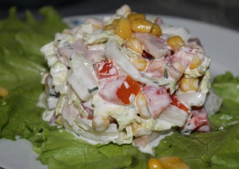 Jabłko umyj, obierz, a następnie pokrój lub zetrzyj na tarce z małymi oczkami. Zetrzyj marchewkę, a kapustę posiekaj. Umieść je w misce razem z jabłkiem i kukurydzą. Dopraw do smaku solą, pieprzem i sokiem z cytryny.
