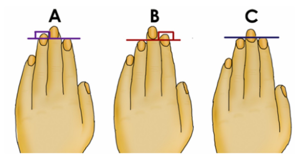 Dłoń „C” ma palec serdeczny takiej samej długości jak palec wskazujący.