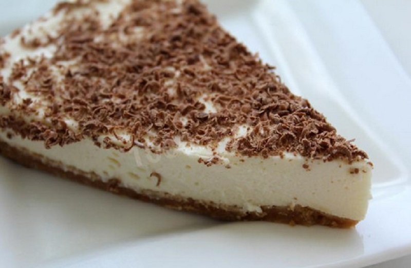 Górę ciasta przed podaniem warto ozdobić czekoladą startą na tarce lub polewą czekoladową.