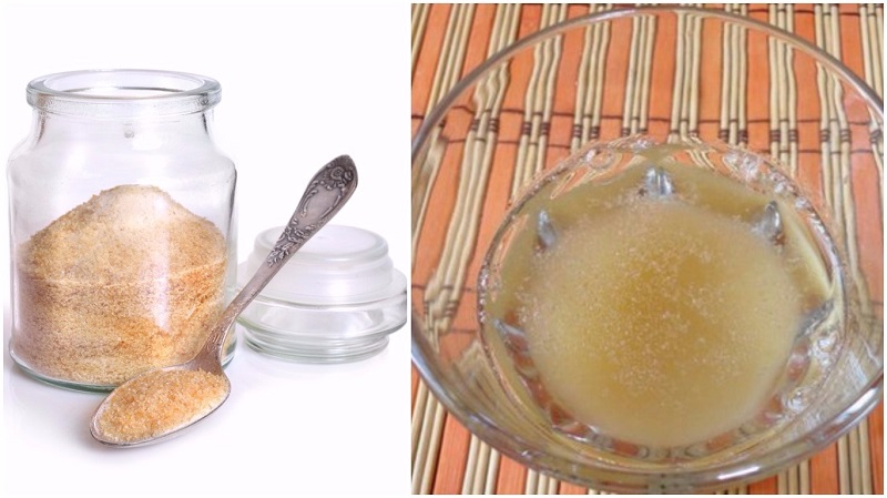 Do miski wrzuć żelatynę w proszku i dolej wodę. Odstaw mieszaninę na kilka minut. Wlej żelatynę do rondla i ogrzej na ogniu, aż się rozpuści.
