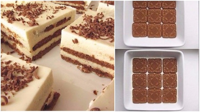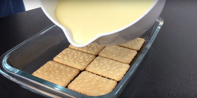 Wyłóż kolejną warstwę herbatników i warstwę kremu. Wykonaj w ten sposób po trzy warstwy.