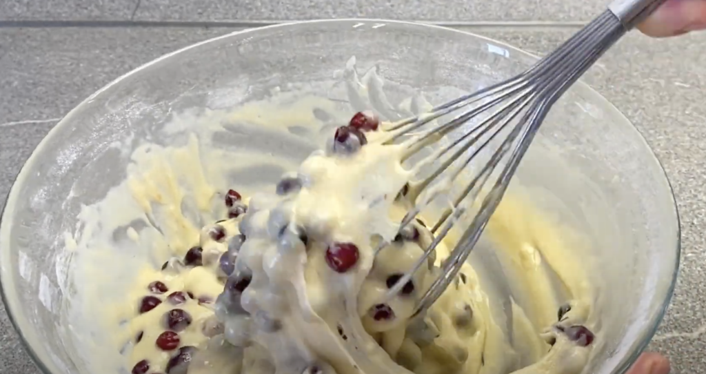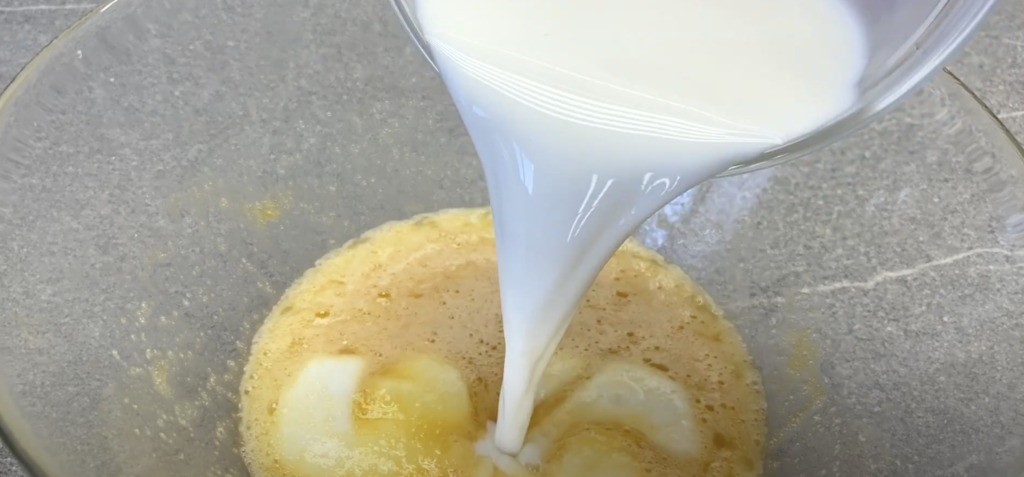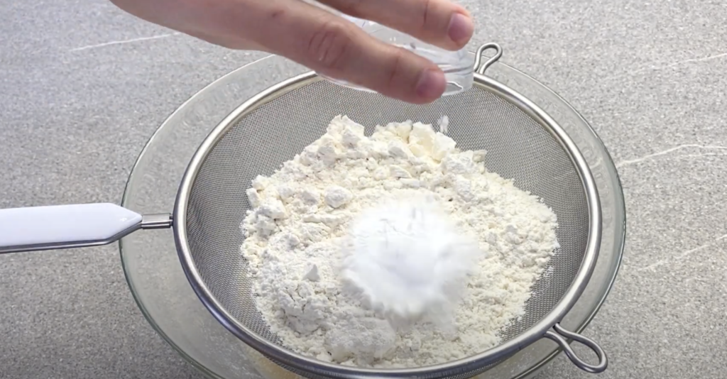 Zmieszać mąkę z proszkiem do pieczenia, a następnie przesiać do miski z resztą składników.