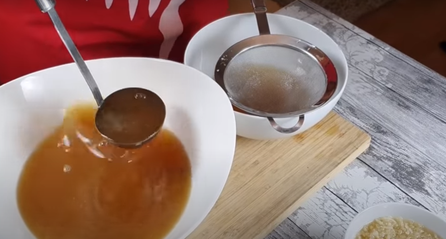 Odstaw na około 5 minut, a następnie odcedź bulion. Następnie odcedź czosnek z bulionu przez sito.