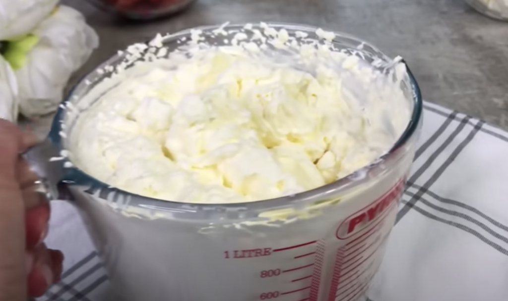 W naczyniu umieść śmietanę i fixy. Wszystko razem ubijaj mikserem do momentu aż powstanie jednolita puszysta masa.