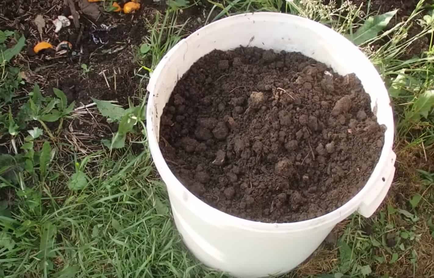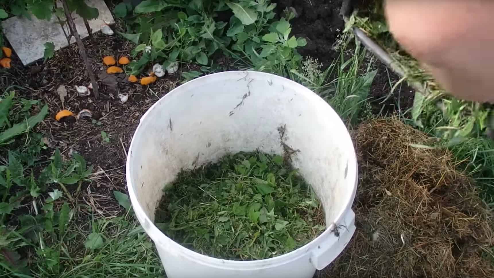 W związku z faktem, że ogórki potrzebują dużo ciepła, najlepiej będzie do plastikowego wiaderka upchać (tak do 3/4 jego pojemności) skoszoną trawę, a następnie dodać warstwę ziemi.