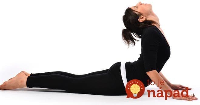 Rozłożony na plecach, umieść ręce pod ramionami. Podczas wdechu podnoś ciało, wyprostuj ramiona. Następnie zginać dolną część pleców i klatkę piersiową. Szyję wydłużaj. Pozycję utrzymuj przez 10-15 sekund, a następnie powoli wracaj.