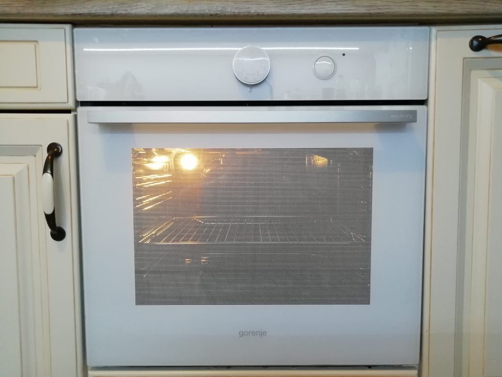 Wstaw talerz do piekarnika i piecz przez 40 minut w temperaturze 200°C. Smaż posiekaną cebulę na oleju roślinnym przez 2 minuty.