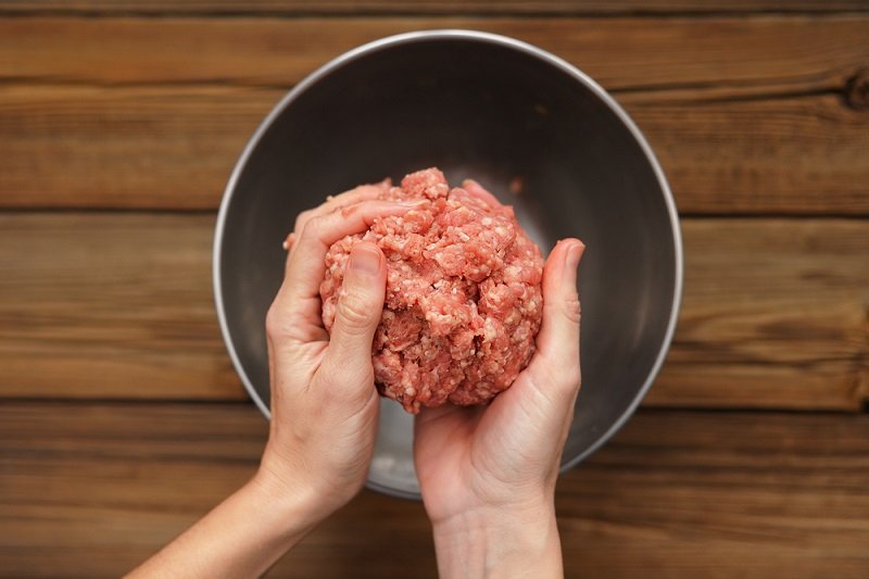 Wymieszaj dokładnie czosnek oraz cebulę ze schłodzonym mięsem mielonym. Dopraw solą i pieprzem do smaku. Przygotowaną mieszankę zostaw jeszcze w lodówce na około 2 godziny. Po upłynięciu czasu chłodzenia, wyjmij mięso z lodówki. Zwilż dłonie chłodną wodą i formuj lekko podłużne klopsiki.