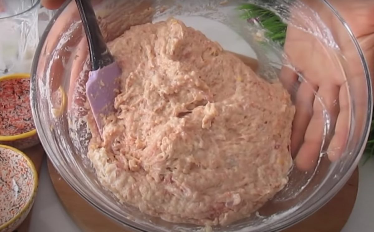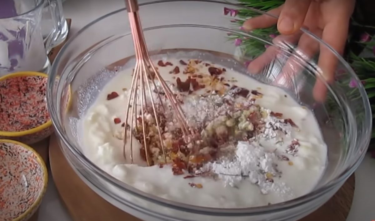 Przygotuj miskę, wlej do niej mleko, a następnie dodaj jogurt naturalny i dobrze wymieszaj. Wrzuć mięso mielone, jajka i czosnek (obrany i przeciśnięty przez praskę), proszek do pieczenia, tymianek, chilli i sól.