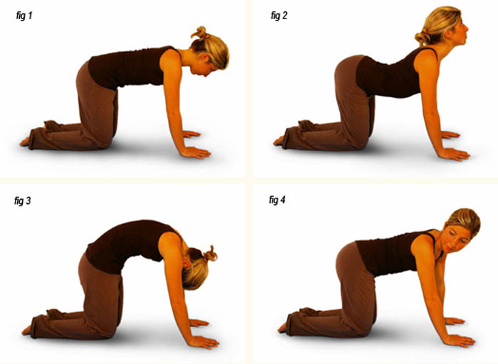 Pozycja, którą znamy z dzieciństwa. Ustaw się w klęku podpartym. Na zmianę wyginaj plecy na kształt łuku – raz w górę, a raz w dół. Rób to powoli i delikatnie.