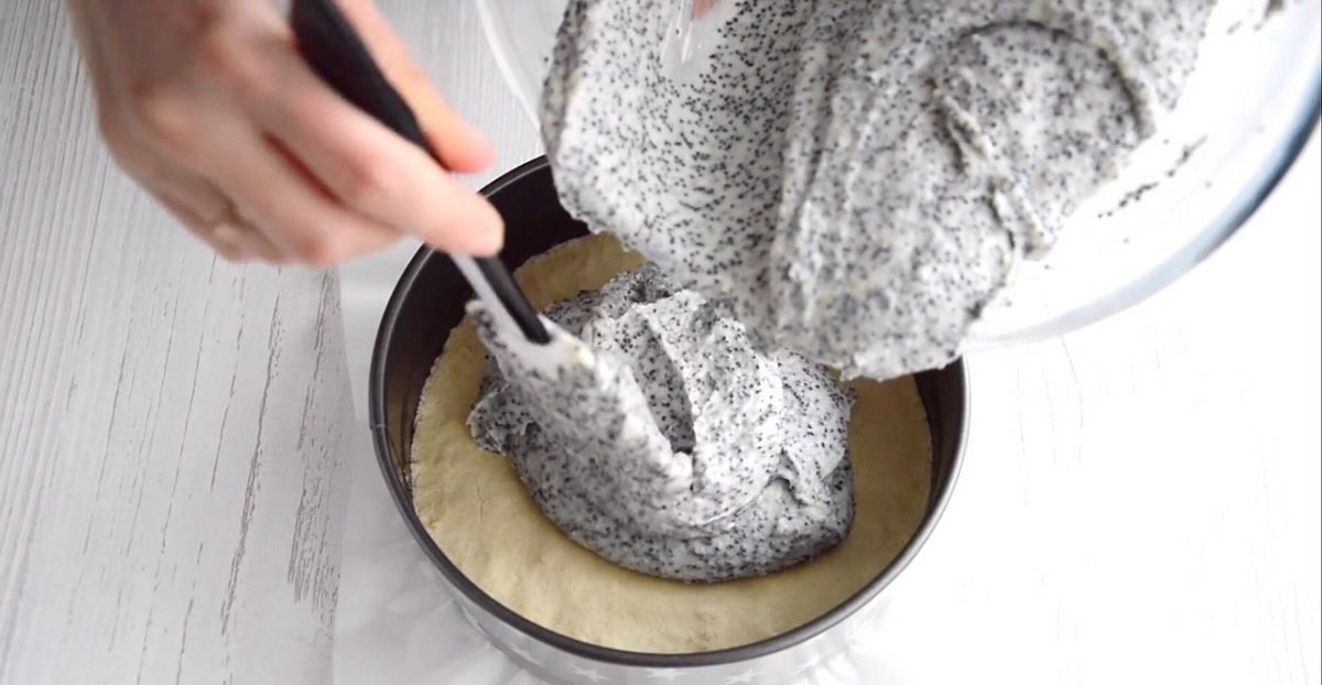 Teraz możesz połączyć razem masę makową i twarogową. Mieszaj, aż będzie gładka. Możesz również wykorzystać w tym celu blender ręczny. Następnie przykryj formę pergaminem. Ułóż w niej połowę ciasta. Podstawa deseru musi być dobrze zbita.