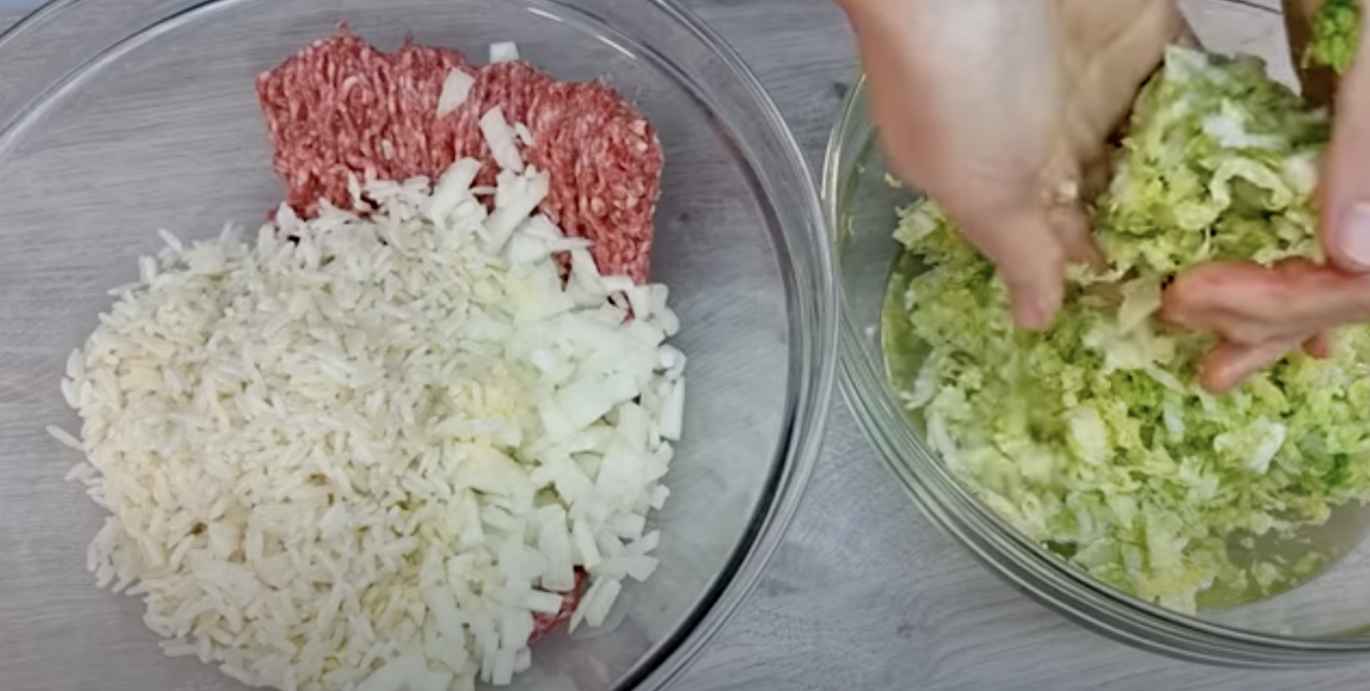 Do mięsa dodajesz kapustę pekińską, odciśniętą z wody, oraz przyprawiasz według uznania i dodajesz 1 łyżeczkę soli.