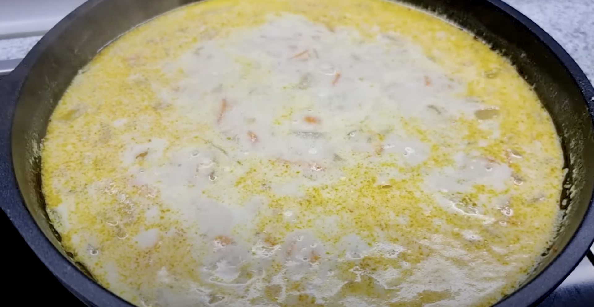 Dodajesz dwa ząbki czosnku przeciśnięte przez praskę, 500 ml wody i 200 g kwaśnej śmietany. Doprowadzasz do wrzenia i dusisz na wolnym ogniu pod przykryciem.