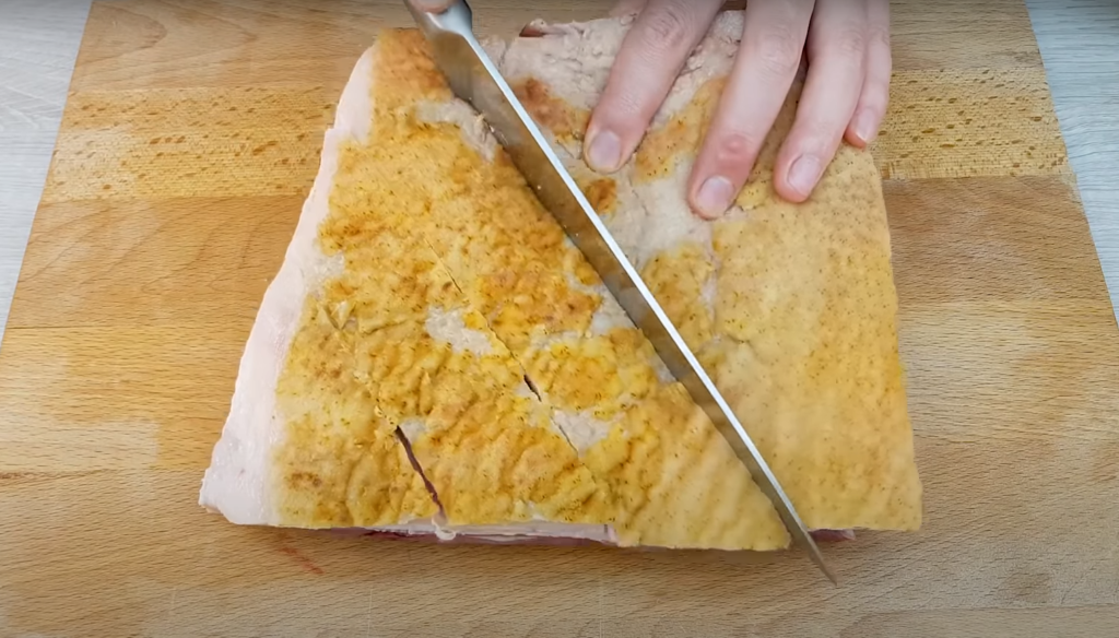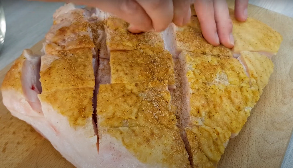 Zacznij od boczku! Zastanawiasz się co zrobić ze skórą? Pozostaw ją albo stwórz na niej kratkę nacinając. Piekarnik musisz nagrzać do 180 stopni – nie zapomnij!