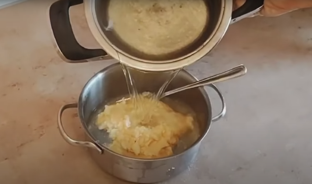 Tak przygotowanie puree wkładamy do garnka i zalewamy wrzącą wodą.