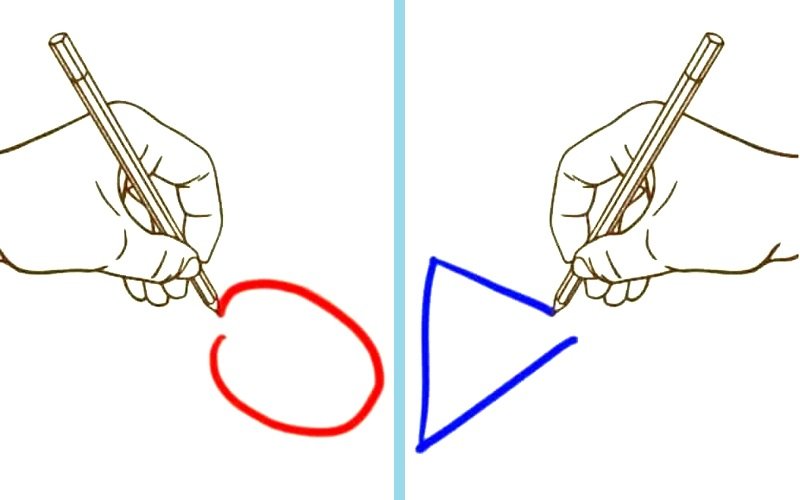 Następnie przydziel każdej ręce inny kształt (np. prawej – trójkąt, lewej – okrąg) i zacznij je rysować obiema rękoma jednocześnie. Prawda, że nie jest to łatwe?