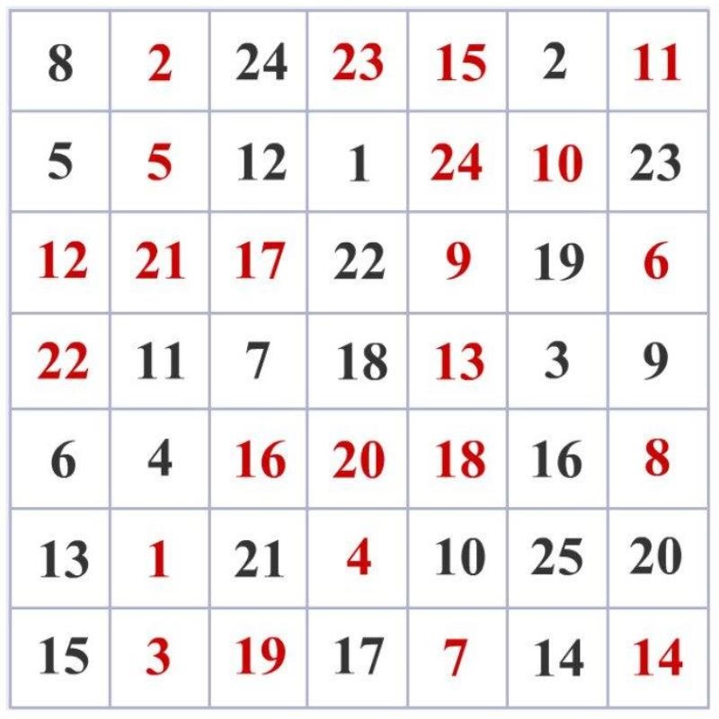 Twoje zadanie polega na jak najszybszym znalezieniu i wymówieniu na głos liczb od 1 do 25. Pamiętaj, żeby przez cały czas skupiać wzrok tylko na środku stołu.