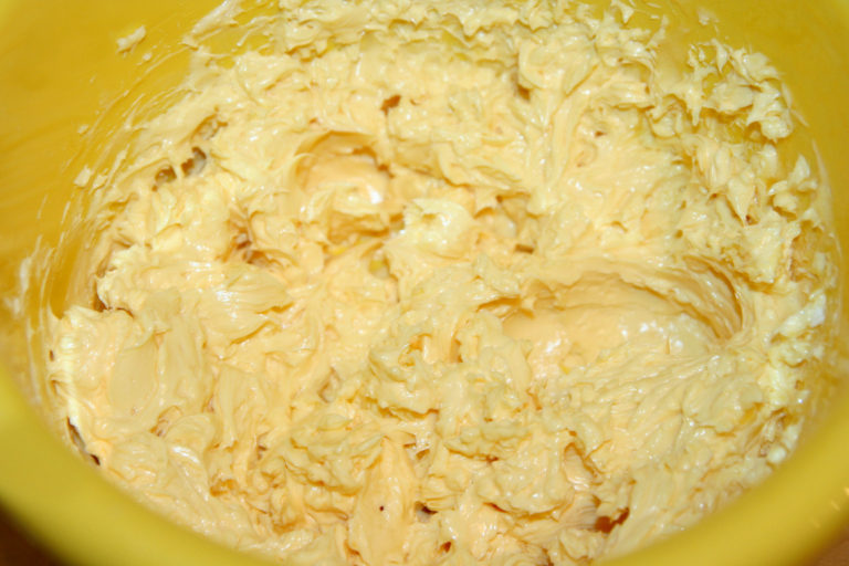Po schłodzeniu wyjmujemy krem z lodówki i dodajemy do niego miękkie masło. Masło należy dodawać po jednej łyżeczce, stale mieszając.