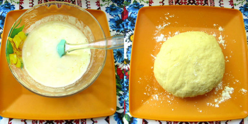Mąkę wraz z proszkiem do pieczenia przesiej i zagniataj ciasto, tak aby nie kleiło się do rąk. Gotowe ciasto, rozwałkuj w roladę i pokrój na kawałki. Każdy kawałek spłaszcz za pomocą dłoni.