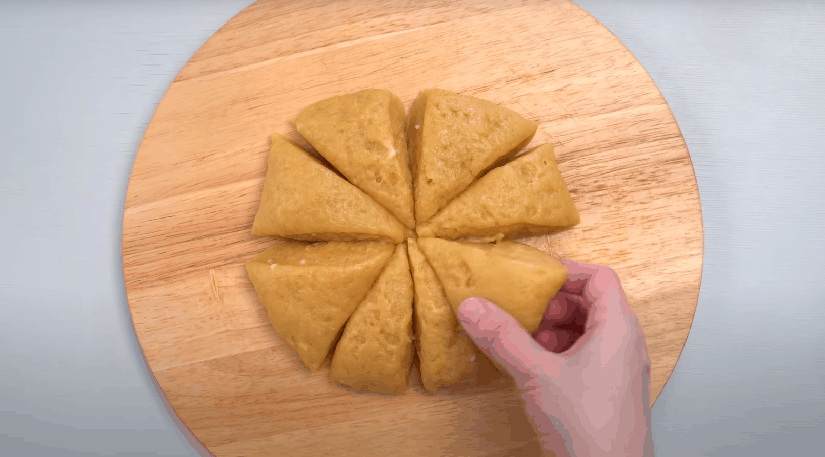 Następnie zdejmij garnek z ognia i lekko ostudź. Gdy masa będzie chłodna dodaj do niej pozostałą mąkę i zagnieć ciasto. Podziel je później na 8 równych części. Każdą część rozwałkuj na płaski placek. Usmaż wszystkie placki na suchej i rozgrzanej patelni na niewielkim ogniu. Smaż po ok. 1-2 minuty z każdej strony.