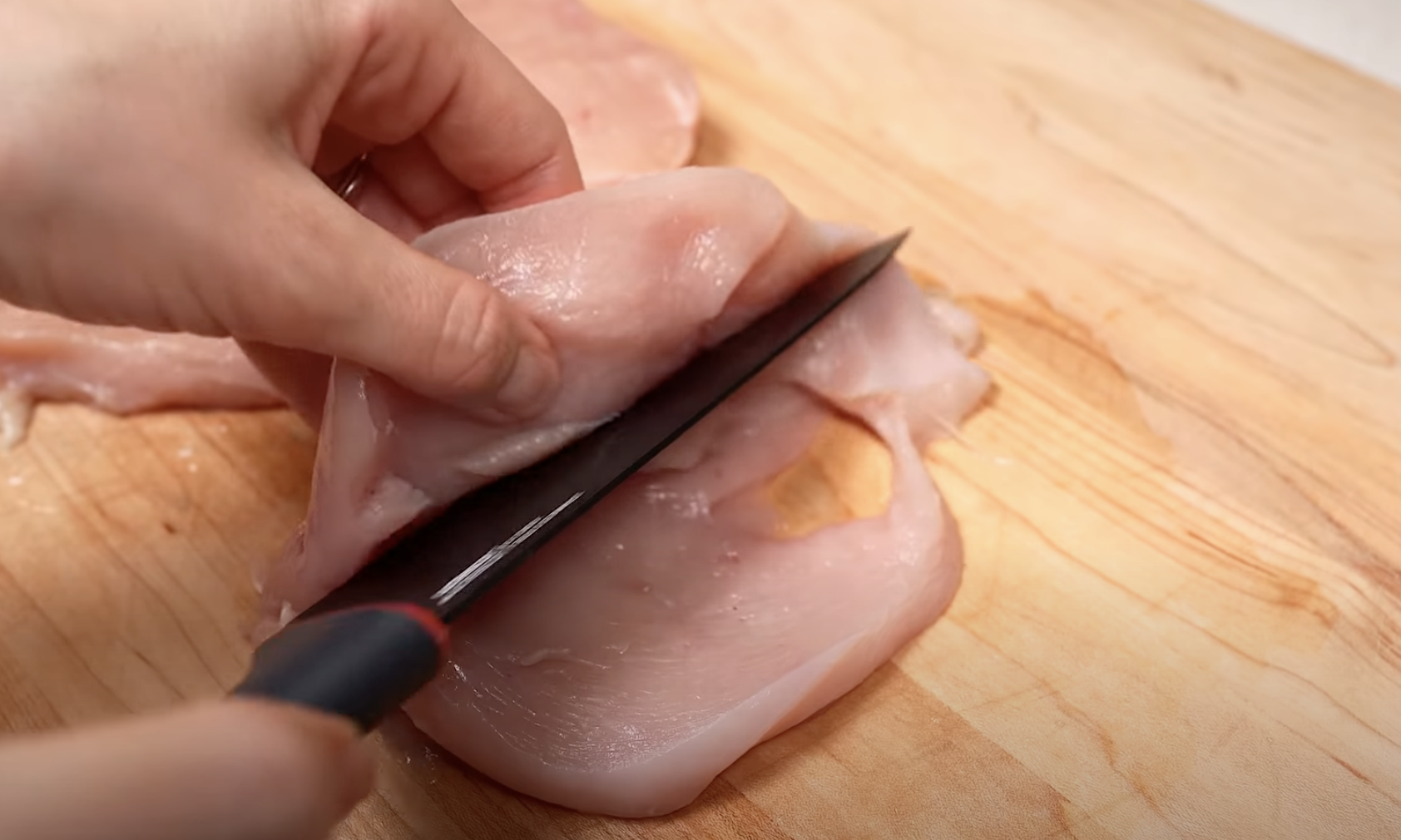 Mięso starannie umyj i osusz ręcznikiem papierowym. Przekrój wzdłuż, ale nie do końca, tak, by powstały kieszonki.