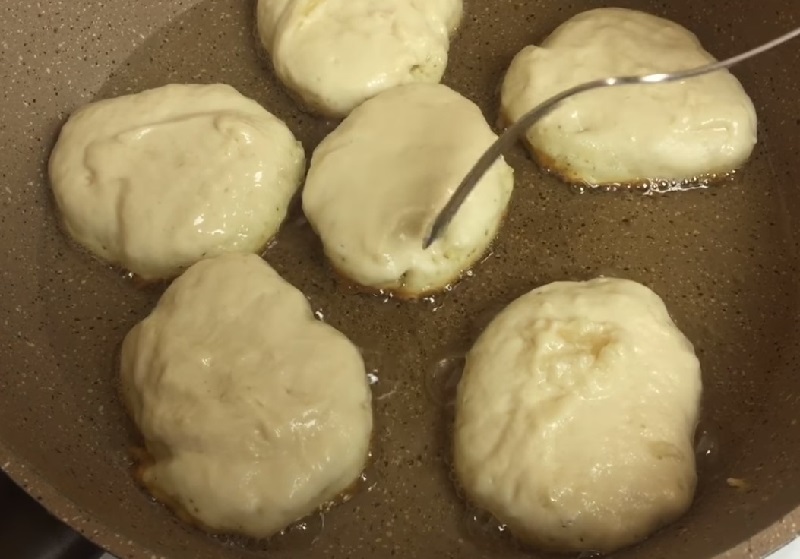 Gdy masa przybierze pół gęstą konsystencję, odstaw ją na 5 minut. Weź patelnię, rozgrzej na niej olej i zacznij smażyć placuszki. Nakładaj około 1 łyżkę stołową ciasta i wylewaj ją na patelnię.