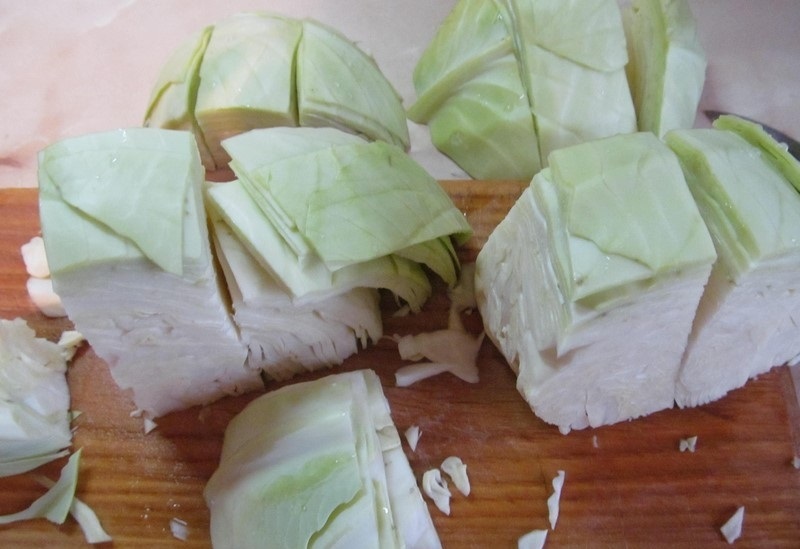 Wodę wlewamy do garnka i dodajemy cukier, sól, pieprz oraz ocet. Tę mieszaninę musimy zagotować. W tym czasie bierzemy kapustę i dzielimy na około 8 do 10 części (w zależności od wielkości kapusty).