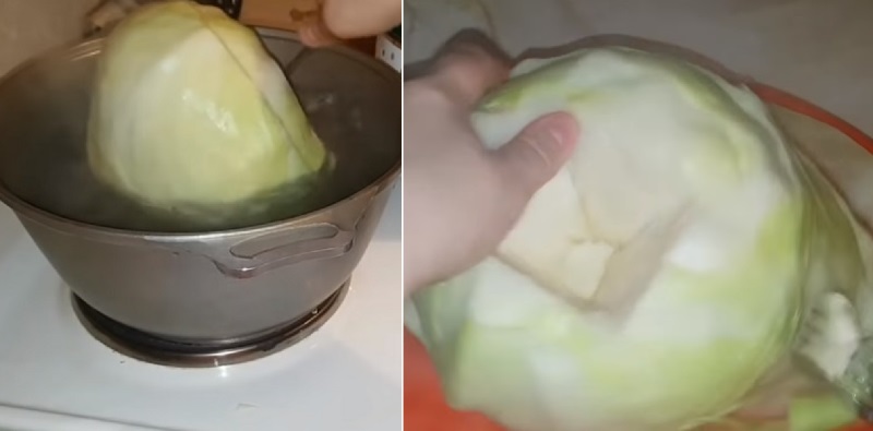 W garnku zagotuj kapustę w wodzie i delikatnie oddziel od niej liście. Odłóż je w jednym miejscu, dając im czas na ostygnięcie.