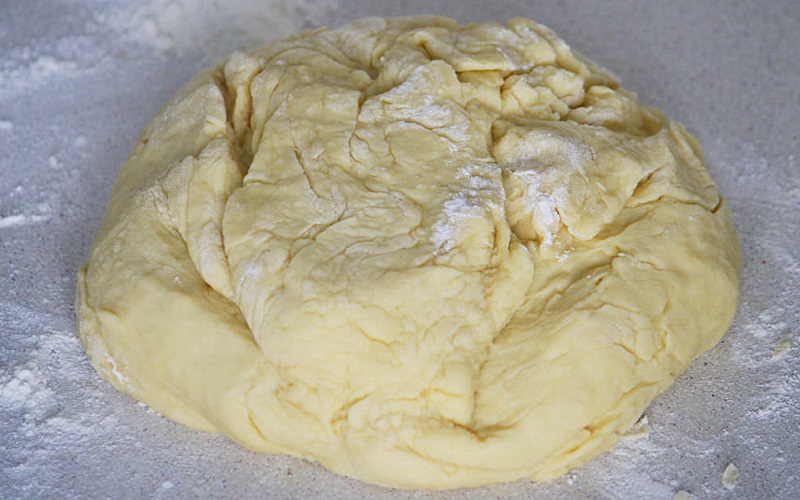 Przesiewamy mąkę razem z proszkiem do pieczenia do masy. Następnie dodajemy sól i zagniatamy cisto rękami aż stanie się elastyczne. Z gotowego ciasta formujemy rogaliki. Najłatwiej zrobić to odrywając kawałek ciasta, ręką utworzyć z niego rulon, który następnie układamy, na blaszce wyłożonej papierem do pieczenia, w księżyc.