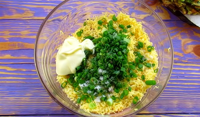 W misce ubijamy jajka, przyprawiamy solą i pieprzem i jeszcze chwilę ubijamy. Następnie do jajek wsypujemy przesianą przez sito mąkę. Całość mieszamy aż do uzyskania jednolitej, gładkiej masy.
