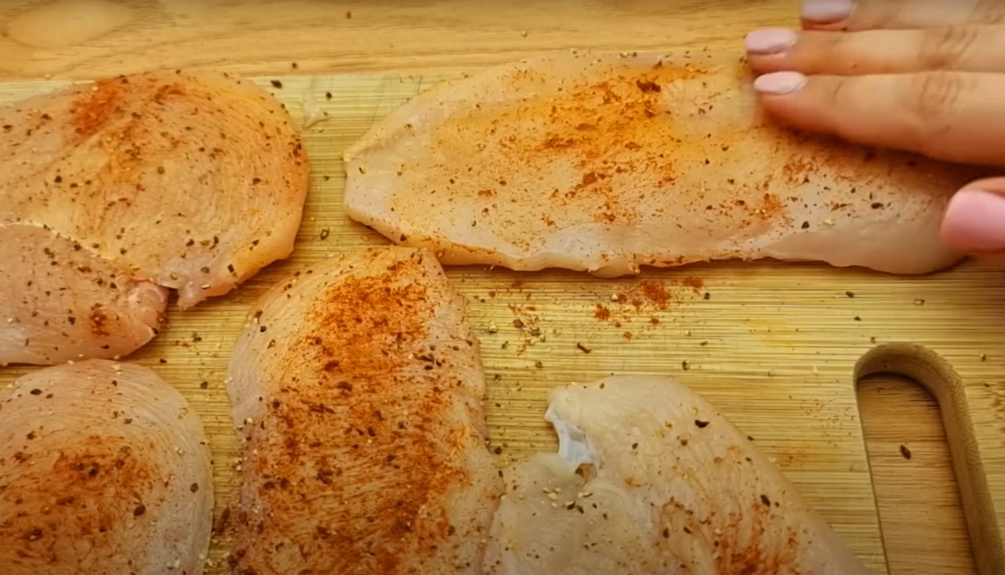 Przygotowanie rozpocząć należy od pokrojenia kurczaka na mniejsze kawałki, które następnie powinny zostać rozbite tłuczkiem. Przygotowane w ten sposób mięso należy następnie doprawić solą, pieprzem, papryką oraz ziołami z obydwu stron.