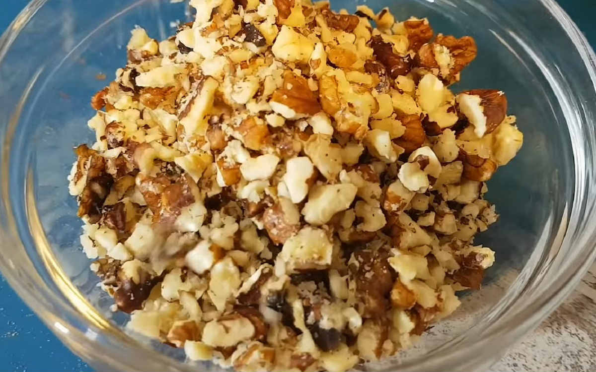 Umieść ciastka w kielichu blendera – zmiksuj. Tak samo postąp w przypadku orzechów. Jeżeli nie posiadasz blendera nie martw się – możesz to zrobić ręcznie. Wystarczy wymienione wyżej składniki umieścić w foliowej torebce i zmiażdżyć je za pomocą wałka.