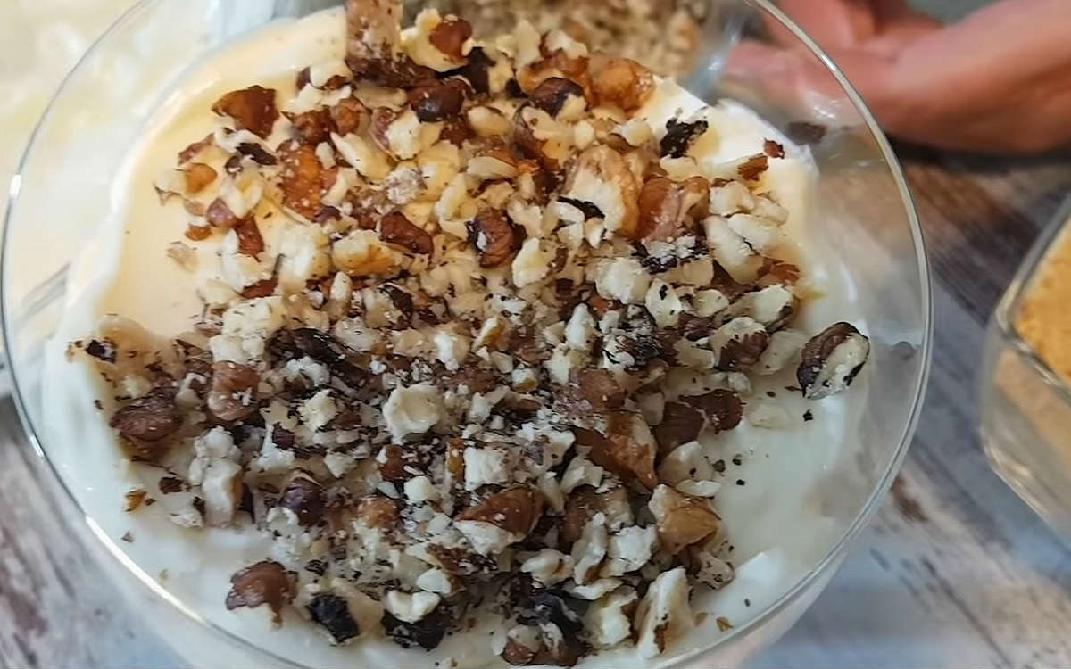 Na dnie miseczki ułożyć biszkopty, posypać je orzechami, a te z kolei przykryć kremem. Czynność powtórzyć.  Kolejność warstw dowolna. Możesz eksperymentować ze składnikami. Ogranicza Cie tylko twoja wyobraźnia.