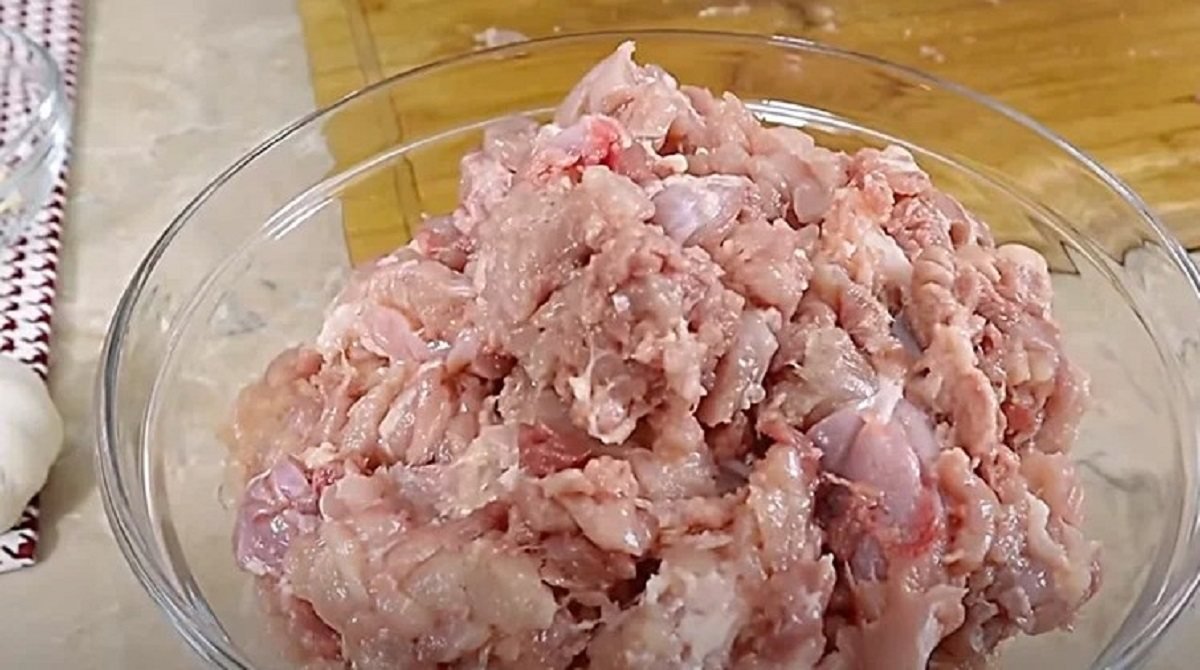 Odkrajamy mięso od kości, następnie zalewamy je wodą oraz gotujemy. Kiedy mięsko będzie już ugotowane należy zmielić je razem z czosnkiem w maszynce.  Jeśli nie posiadasz takiej maszynki, wówczas wystarczy, że drobno je posiekasz.