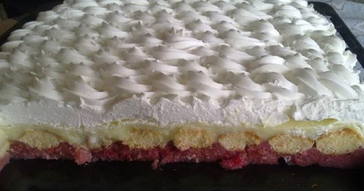 Bierzemy biszkopty, które należy ułożyć na wierzchu wiśni. Budyń należy przyrządzić w sposób tradycyjny. Jeszcze ciepły budyń należy wylać na biszkopty. Całość należy zostawić do momentu, aż wystygnie. Śmietanę należy ubić na sztywno z cukrem, aby powstała z niej bita śmietana.